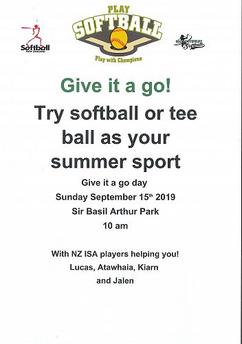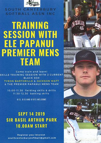 South Canterbury Softball are also hosting some Black Sox and Canterbury Mens Rep players on Saturday 14 September at 10.00am at Sir Basil Arthur Park. They will be taking a training session and a skills clinic. Anyone is most welcome to attend