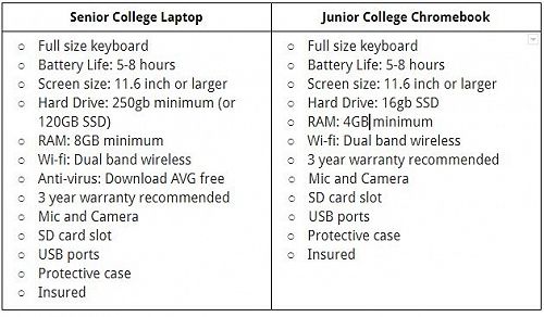 Below are our device recommendations. Note that the minimum recommended screen size excludes smartphones and tablets. Experience tells us that a device that is looked after will last 3 years.