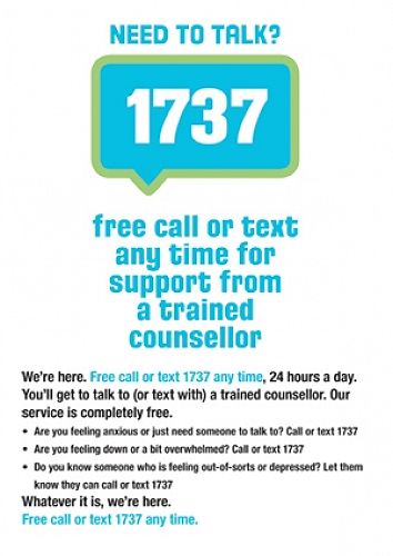Finally there are lots good of online support options and you can message always message 1737 24 hours a day to talk with a trained counselor.