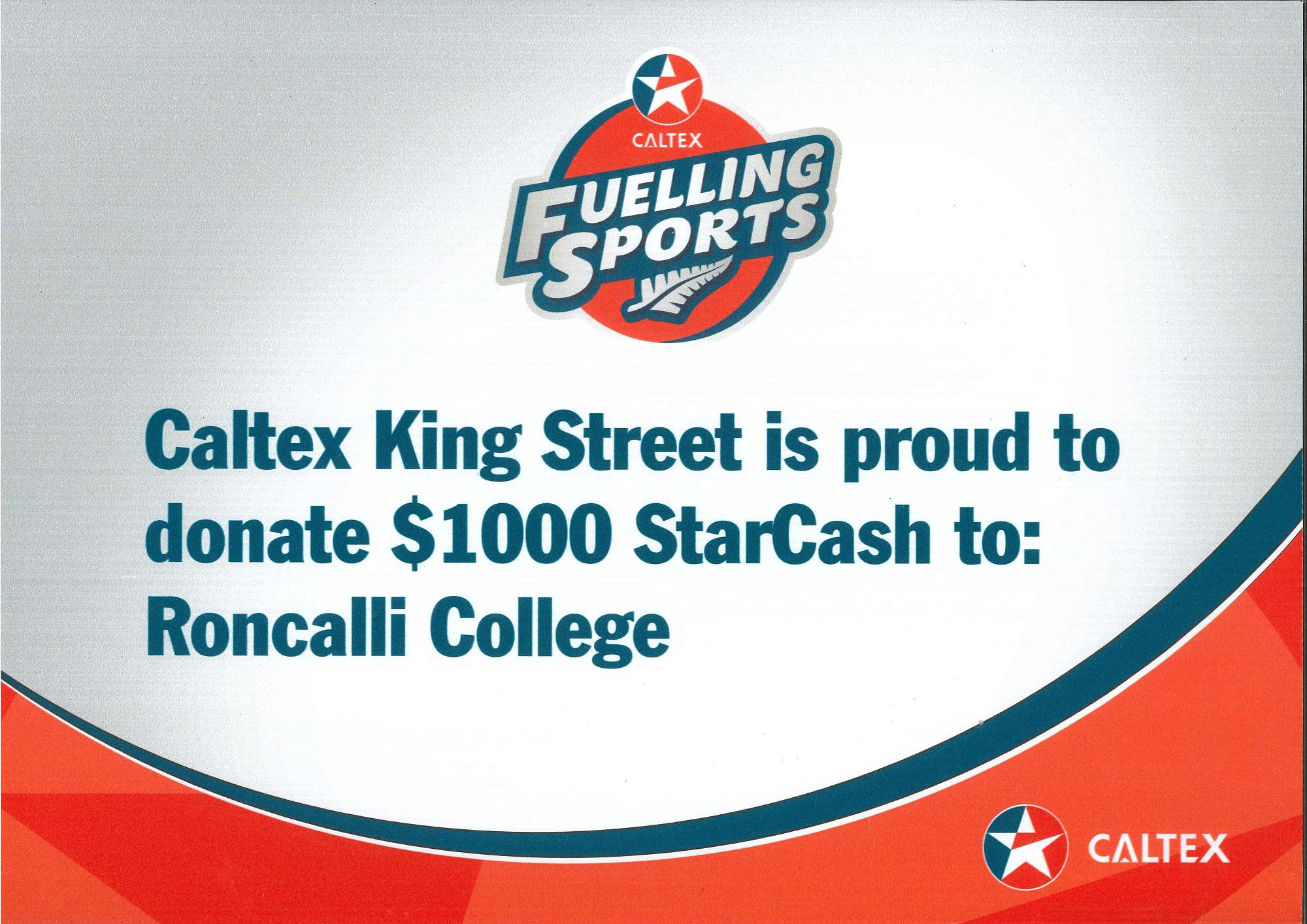 Caltex King Street nominated Roncalli College as a recipient of one of these sponsorship opportunities.