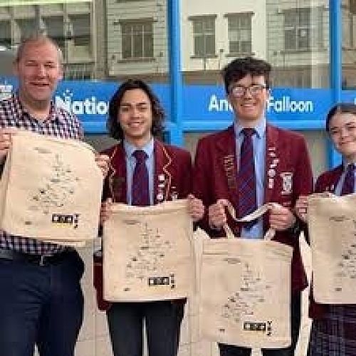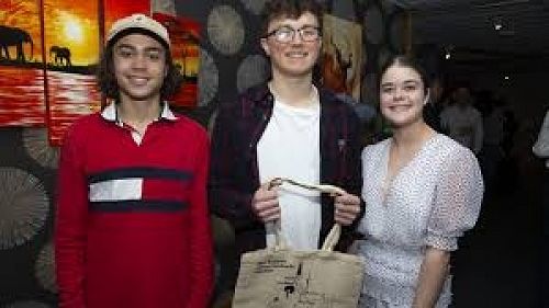 Grace Scarsbrook, Nicholas Goodwin & Billy Cook are the South Canterbury Regional champions for The Lion Foundation Young Enterprise Scheme with their jute and cotton bags