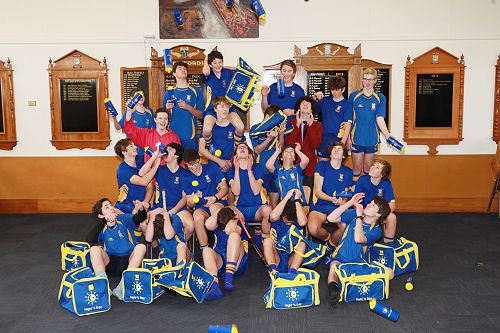 The Roncalli College Hockey teams with their new team bags and drink bottles kindly sponsored by Night 'n Day. They look great team!