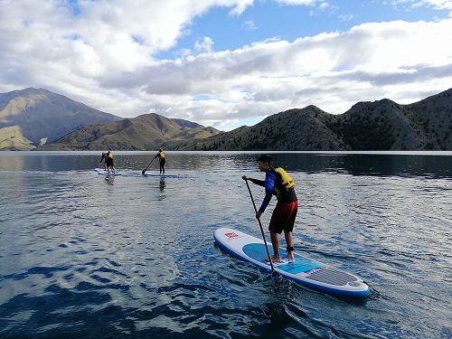 The students paddled downwind on Lake Aviemore, did a round trip on Lake Benmore from the dam to Junction Island and return, and finally some awesome Paddleboard surfing at Waikouaiti River Mouth whilst dolphins cruised amongst us.