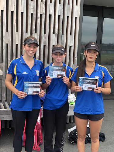 Jess, Maia and Tyla formed the team that represented Roncalli College at the South Island Secondary Schools Tennis Championships over 26-27 February. A last minute call to cancel and then reinstate the event by the organisers meant that many teams pulled out. This left five teams in the Cup Championship.