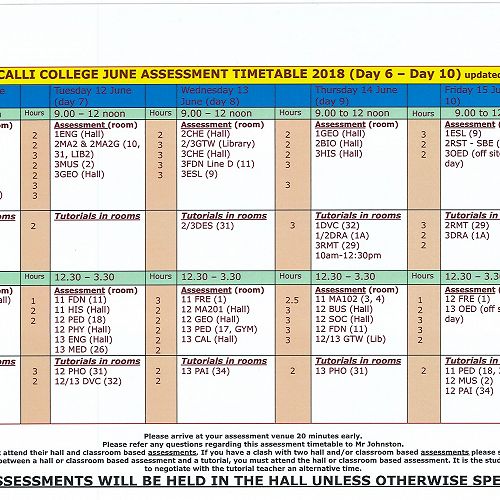 Senior Assessment Week begins on Monday 11 June and concludes on Monday 18 June