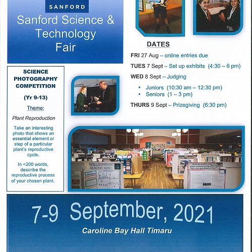 Visit this articleThe Sanford Science & Technology Fair is back, so get your students thinking again about how to solve the world’s problems, great and small! The Fair dates are 7-9 September with entries due on Friday 27 August.