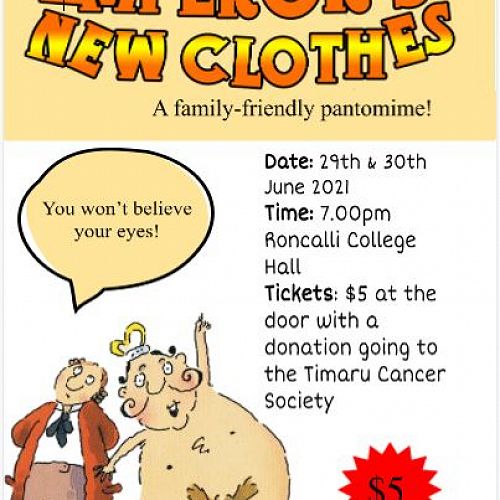 Visit this articleThe Roncalli Senior Drama Class presents for your amusement this Term, 'The Emperor's New Clothes'. A pantomime adaptation of the tale inspired by Hans Christian Anderson.