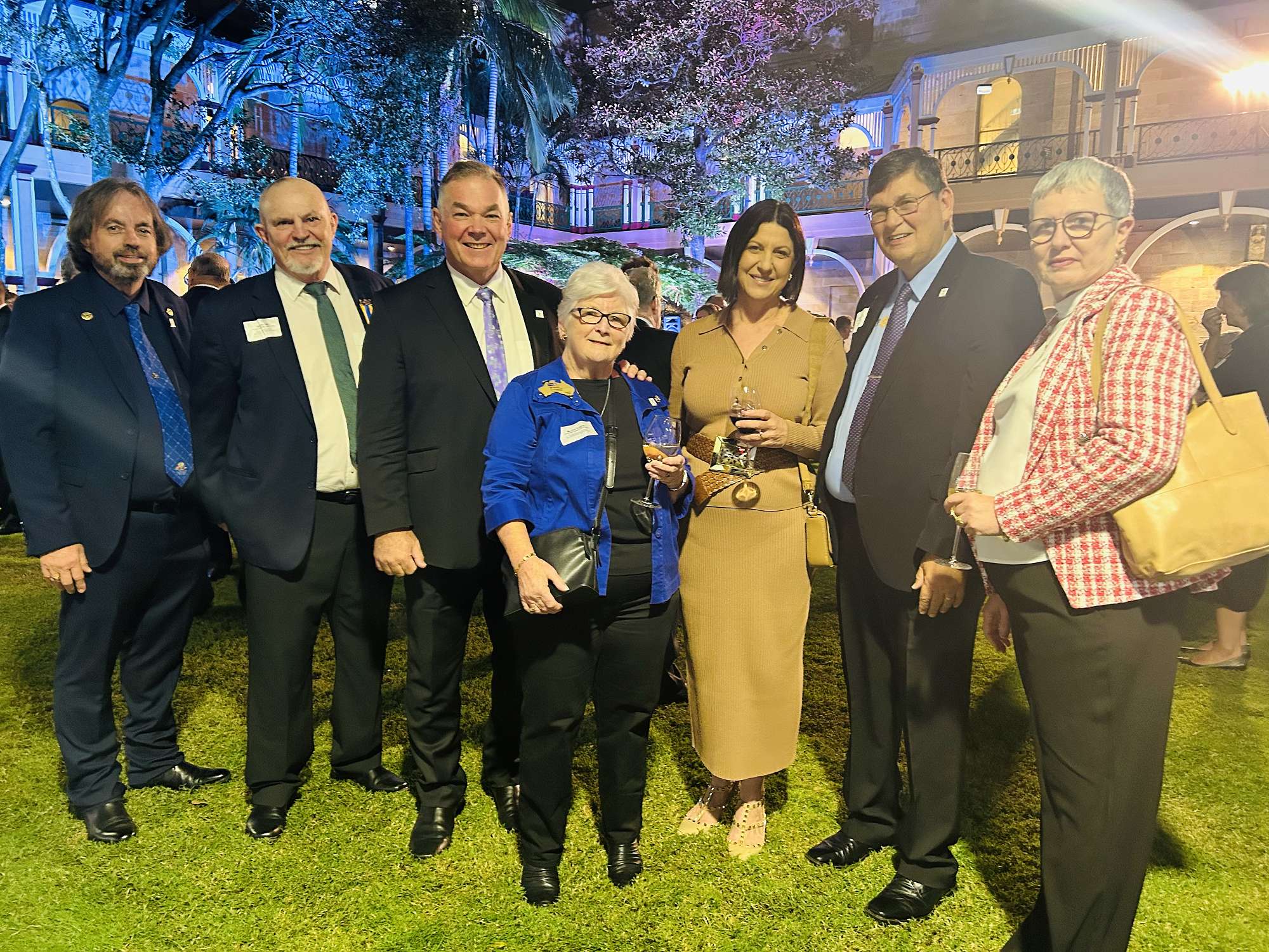 Rotary presidents from Townsville, Rockhampton, Cairns, Mackay, Bundaberg, and Gladstone joined DG John Hall and Irene at the cocktail function on the green at Parliament House.