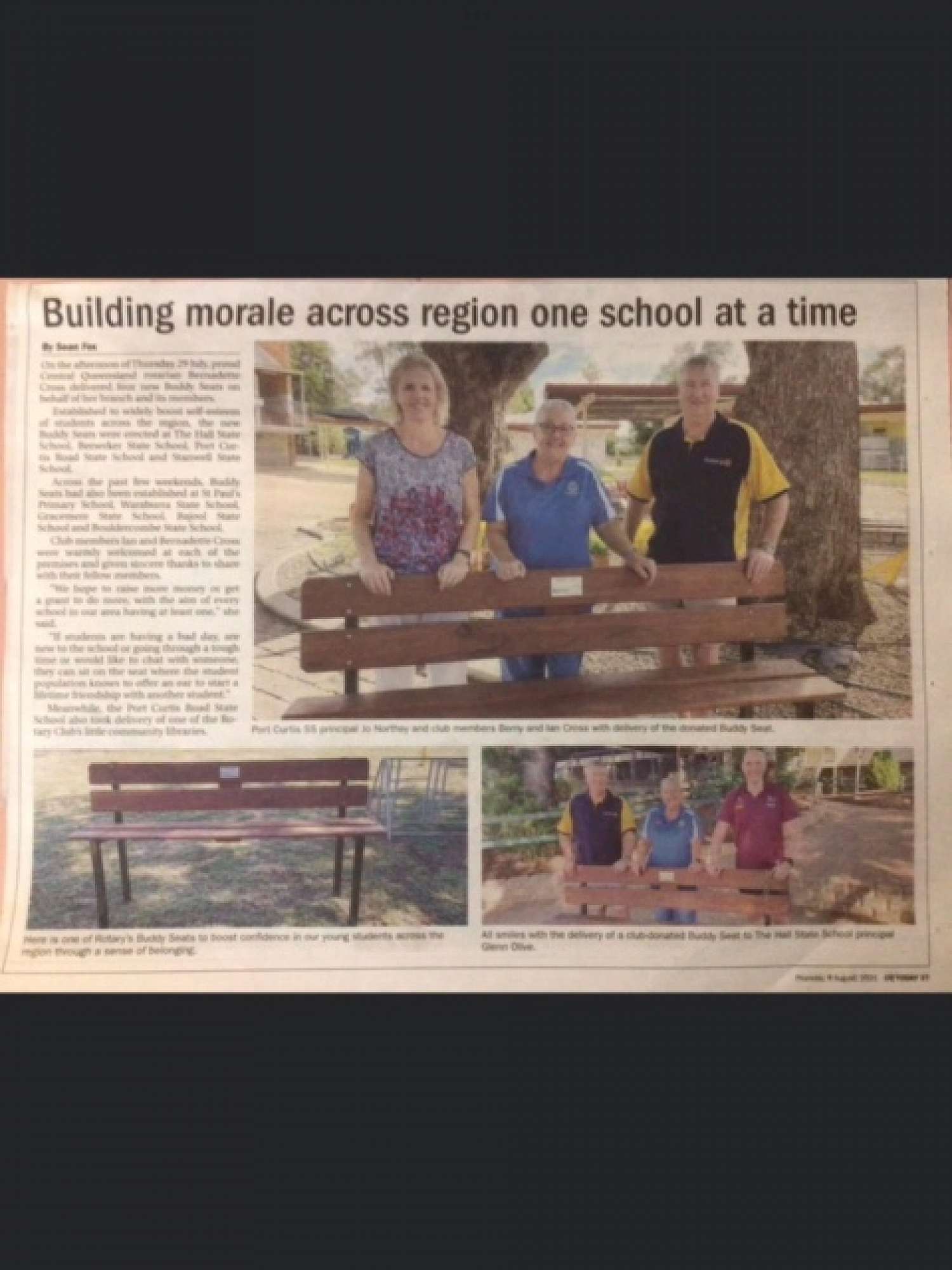 Our Rotary Club of Rockhampton Fitzroy to date, have had constructed and installed 13 Buddy Seats in our local community. They are at