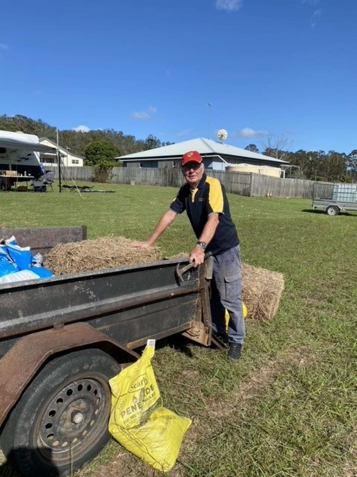 Firstly, Keith organised the trees, soil, gro-bags, stakes, mulch, fertilizer, water retention beads, equipment hire and water. The trees, all native to the area, were planted on the Boyne Burnett Inland Rail Trail at Golembiel Camping Grounds. 106 trees were planted including: Hoop Pines; Bottle Brush; Tuckeroo: Figs and Burdekin Plums.