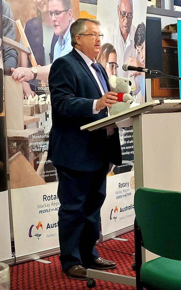 PDG Michael Buckeridge from Mackay addressed the meeting and told everyone of his story in Rotary and some of the achievements and experiences he has had over his Rotary years.