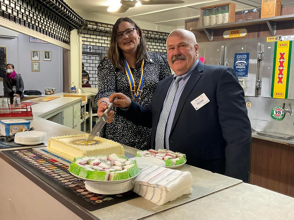 After induction and photos Courtney Murnane the Charter President gave her vision for the Clemont Club. After her speech Courtney joined by Mike McCosker (Emerald President) cut the Charter Cake which went down very well with some ice cream for dessert.