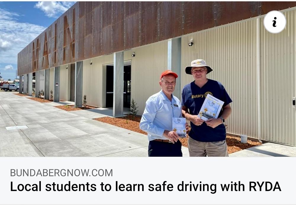 The Rotary Club of Bundaberg provided a road safety driver awareness program, aimed at high school learner drivers, which was held in the region for the first time in October 2021, thanks to a partnership between myPolice Bundaberg, Rotary Club of Bundaberg Inc and Bundaberg Regional Council.