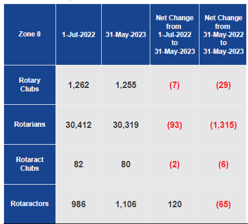 Please note, that as per usual, there will be no 30 June figures. Rotary International only officially reports on 1 July numbers. All membership performance is tracked from 1 July to 1 July.