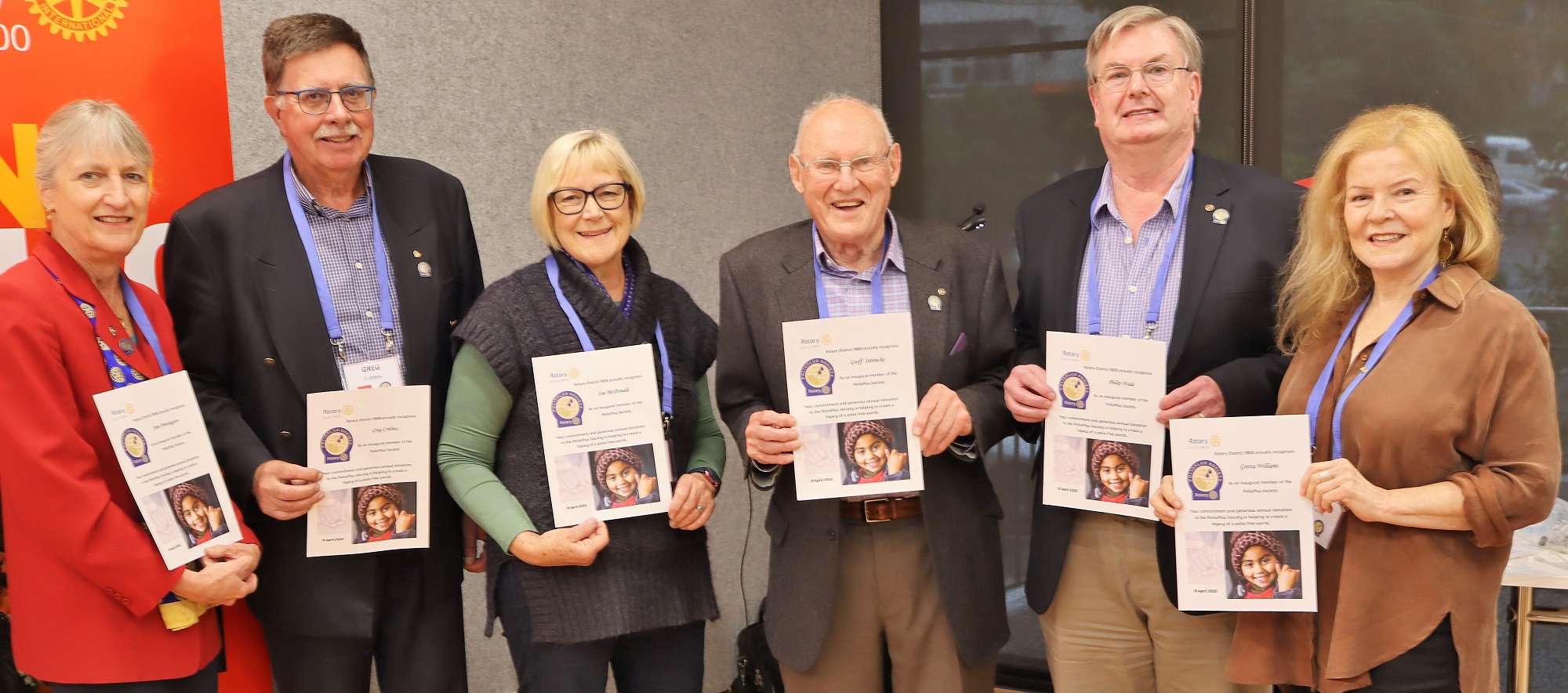 District 9800 PolioPlus Society Last month, District 9800 in Melbourne launched its PolioPlus Society with 50 members. Invitation to join was, and is, open to anyone. However, people known to have supported the polio cause in the past were sent personal invitations to be inaugural members. Each received a lapel pin and certificate of membership. The North Balwyn club, spurred on by past president Jane Pennington, the D9800 Polio Plus Society Coordinator, already has11 PPS members, probably more than any other club in our zone.