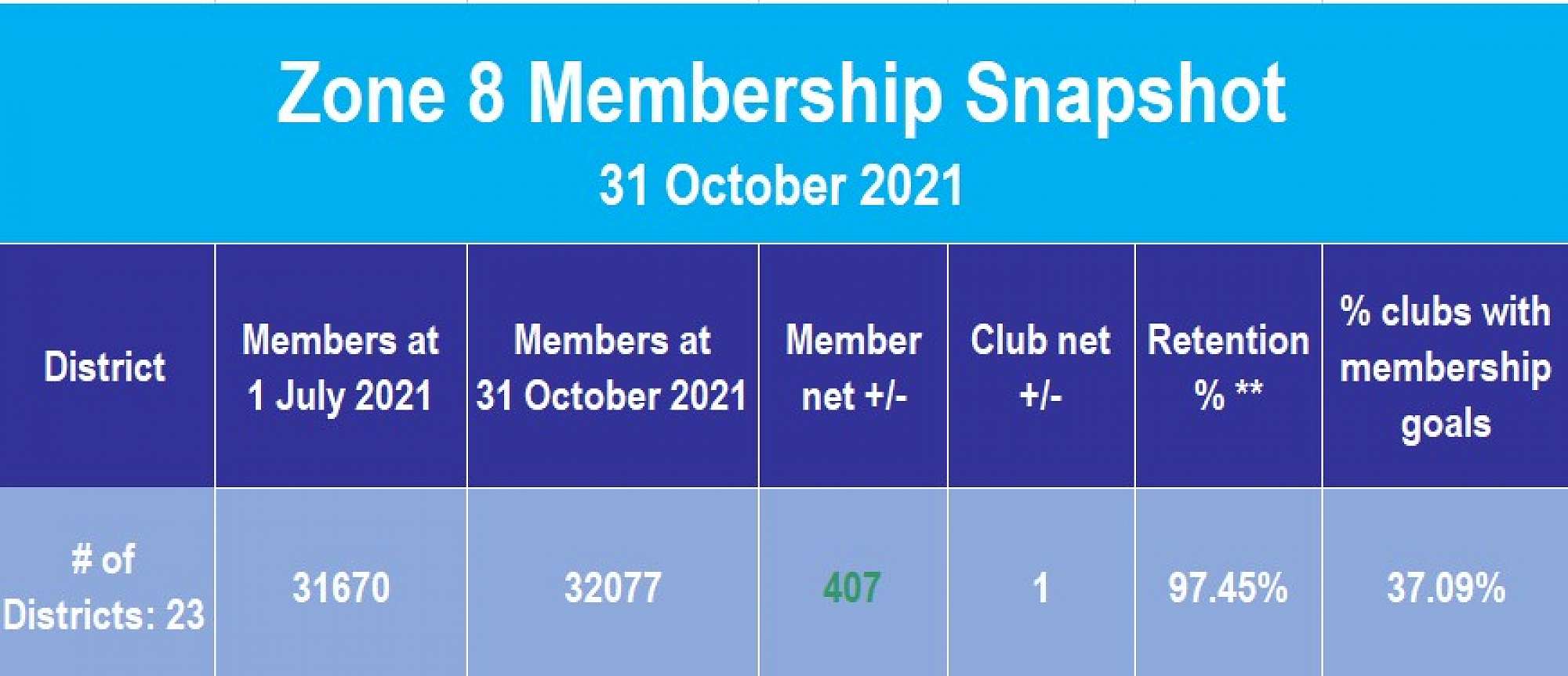 Want to know how our zone and your district are doing membership-wise? Check out this snapshot.