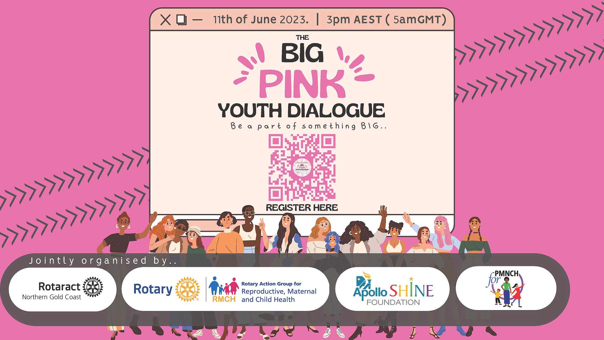 “The Big Pink Youth Dialogue endeavours to do just that. With a two hour zoom event hosted by a youth team from the Gold Coast in Australia, we hope to create a space for conversation, education, and inspiration” says Co-Chair of the organising team Jacqueline Wark President Elect of Northern Gold Coast Rotaract. “Our Rotary Action Group is supporting this event with Internationally renowned keynote speakers to discuss topics relating to women’s health and a team of trained facilitators for breakout rooms to generate energetic conversations and inspiring ideas” says Washington DC based, PDG Dr John Townsend, Chair of RMCH, the oldest Rotary Action Group and winner of the US$2 Million Rotary Foundation 2022 Grant for Programs of Scale to support Safer Families in Nigeria.
