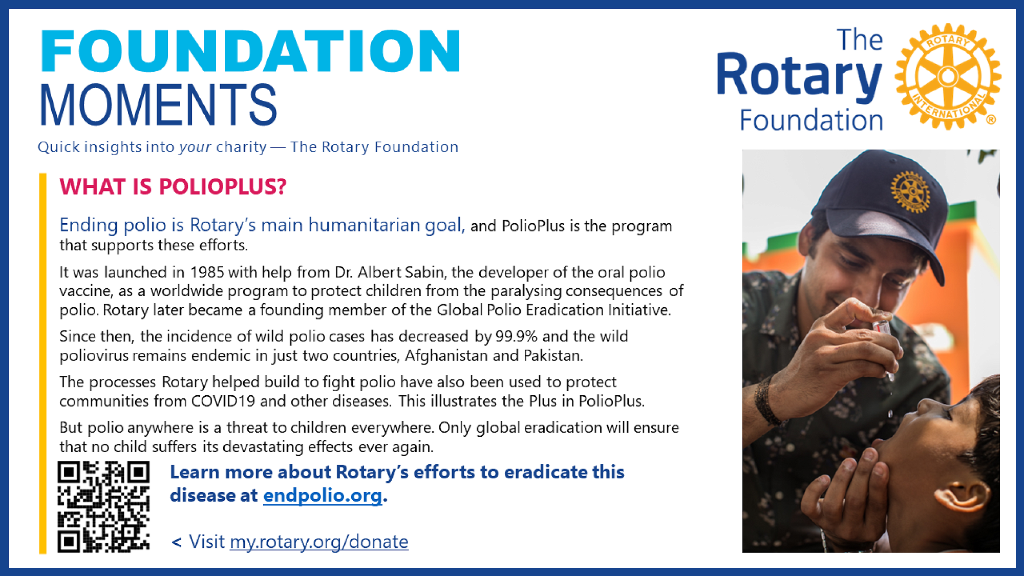 Each month, we’ll provide a snippet of information about the Foundation, 'Foundation Moments', in a form that can be readily used by clubs and districts in their newsletters, web pages, social media pages etc.