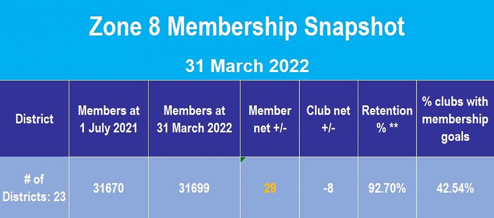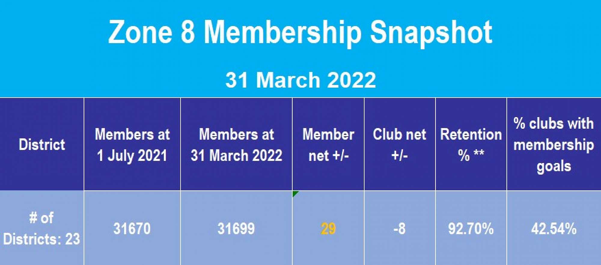 Want to know how our zone and your district are doing membership-wise? Check out this snapshot.