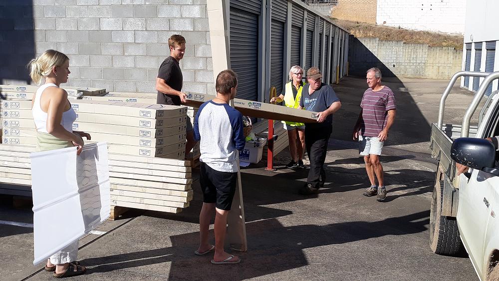 The logistics for Batemans Bay Rotary Club was to coordinate the transport of the sheds from Oldfields, Sydney to storage in Batemans Bay. Then the task for the Narooma, Moruya and Batemans Bay Rotary Clubs was to distribute and deliver these sheds to Bushfire impacted clients as soon as was possible. The Eurobodalla Shire Council Bushfire Recovery Support Service funded the transport from Sydney and the storage of the sheds prior to distribution. Their team contacted bushfire affected residents and offered the sheds as a donation.