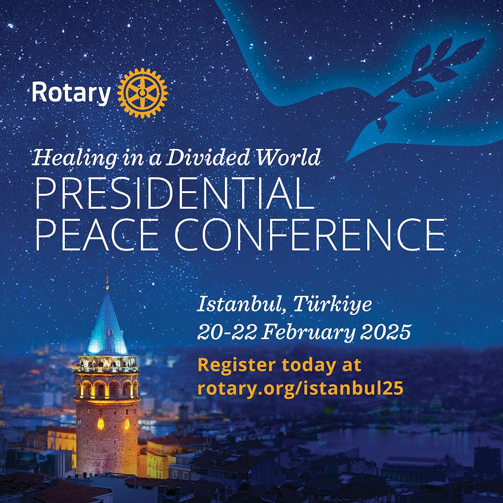 RI President Stephanie Urchick is convening a Presidential Peace Conference in Türkiye on February 20-22, 2025. The event will coincide with the first cohort of Rotary Peace Fellows studying in Rotary’s newest Peace Center, Otto and Fran Walter Rotary Peace Center, in the MENA region, located at Bahçeşehir University (BAU) in Istanbul, Türkiye.