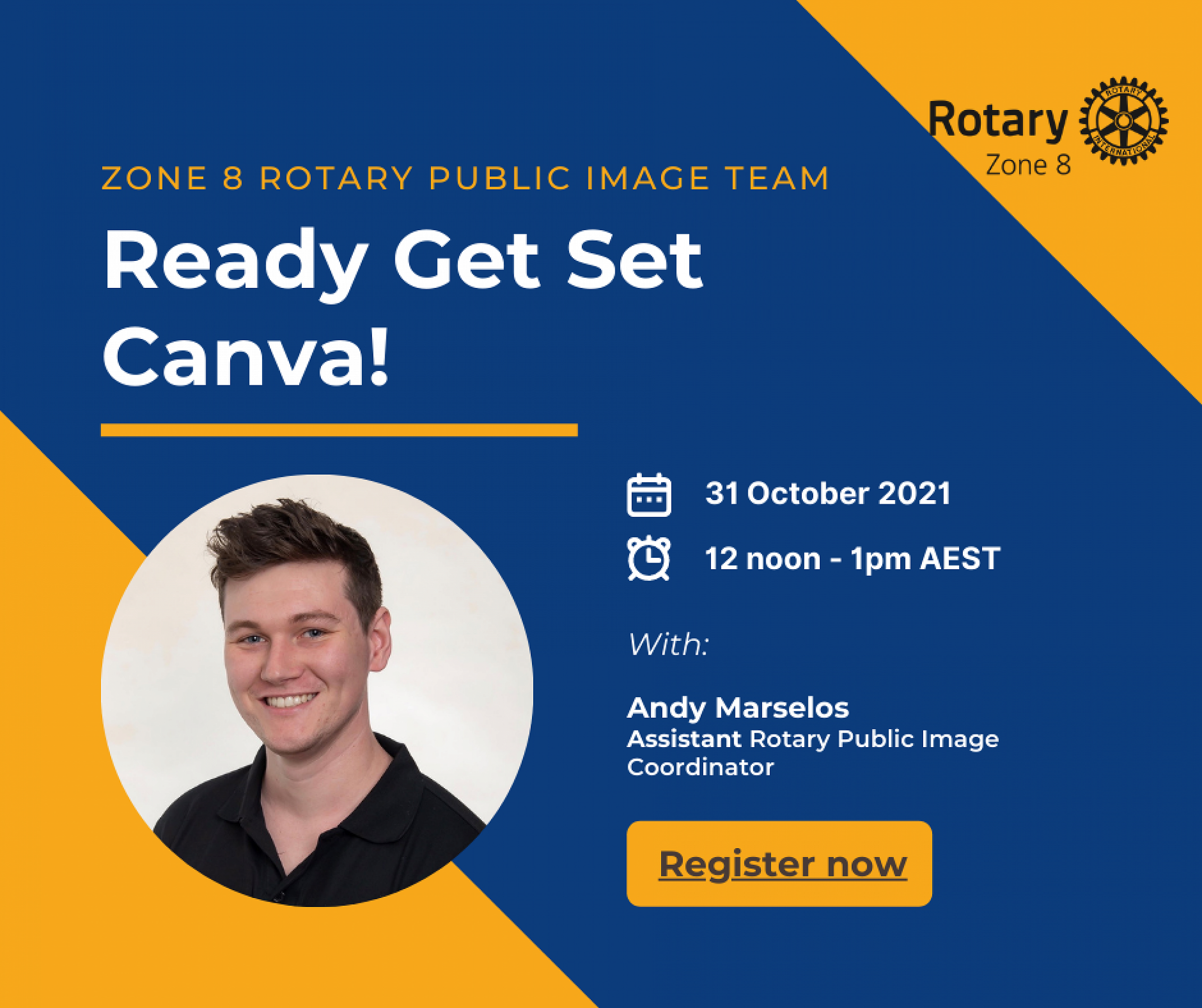 October’s session “Ready Get Set Canva! will be presented by Andy Marselos, Assistant Rotary Public Image Coordinator for Rotary Districts 9640, 9650 and 9670. Andy is the President of Hunter Rotaract Club and a member of the East Maitland Rotary Club. Workwise, Andy is a Social Enterprise Coordinator for Social Traders. He will be teaching us all about Canva. Canva is so much fun and so easy! If you ever need to create ANYTHING … an invite, a flyer, a social media post, presentation ANYTHING register for Ready Get Set Canva!