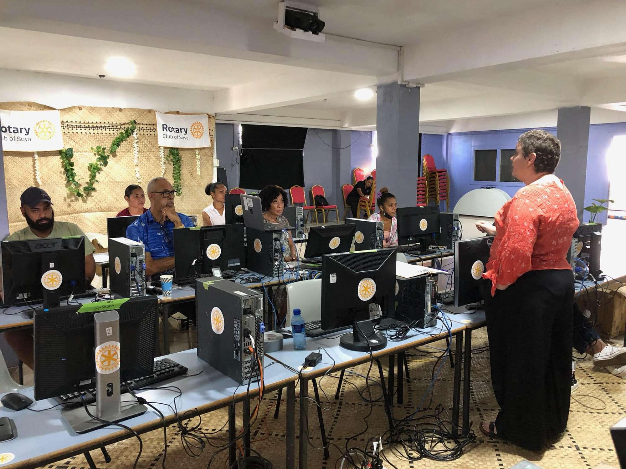 Since coming back to Australia in 2020, Kate has been appointed as the education coordinator. The “Teacher in a Box” project started by taking old computers, clearing the hard drives and filling them with all sorts of things, mainly educational but also community and peace building, then sending them to clubs in other countries who have identified schools and communities who need these types of resources. The computers come with a wi-fi broadcaster, so they create their own closed LAN network.