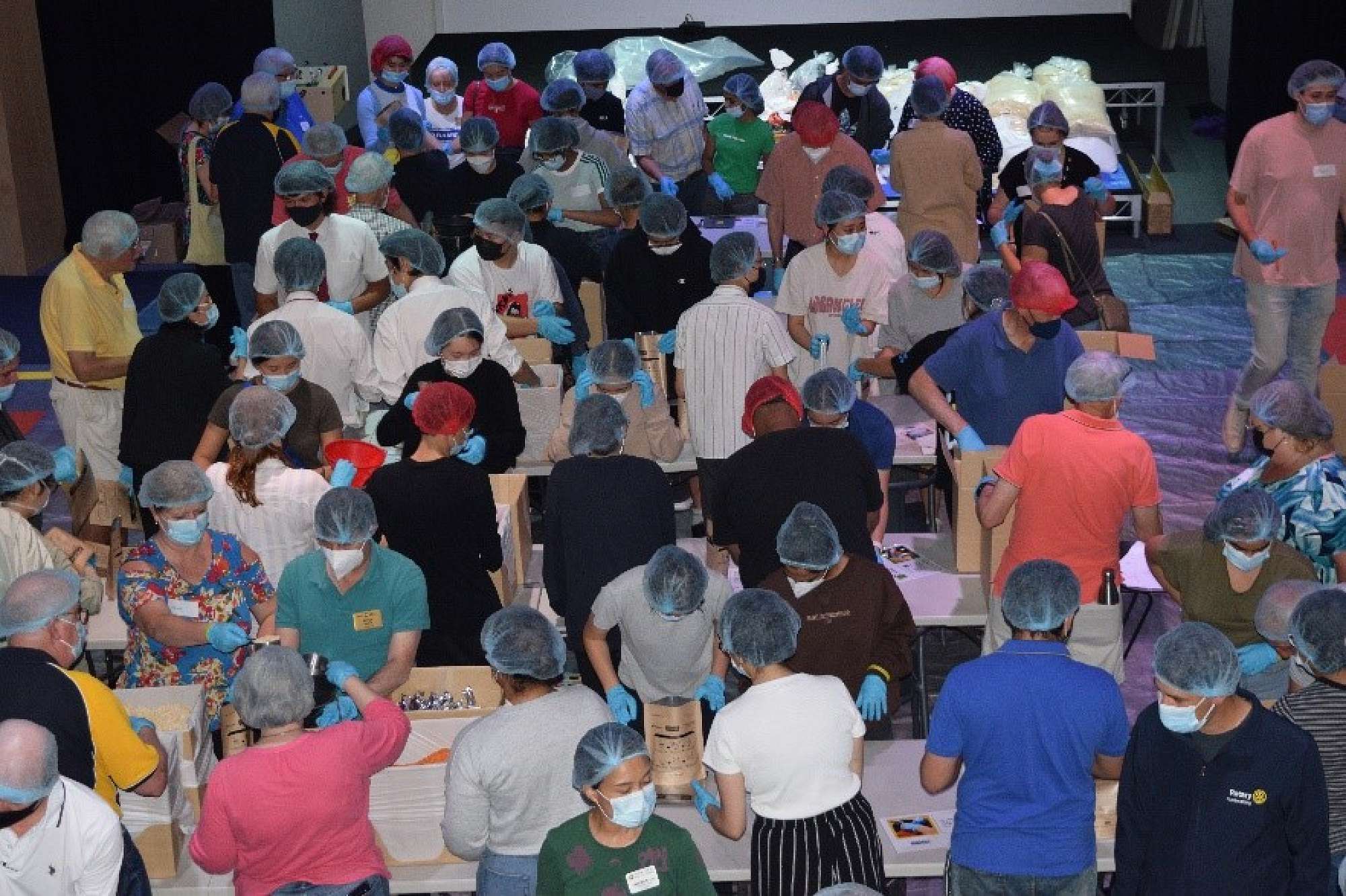 In under two hours we packed 4,000 bags of food, which will provide 20,000 meals to those who need emergency food relief. These meals have already been sent to Rotary Clubs in the Philippines who will ensure they are distributed to those who need them.