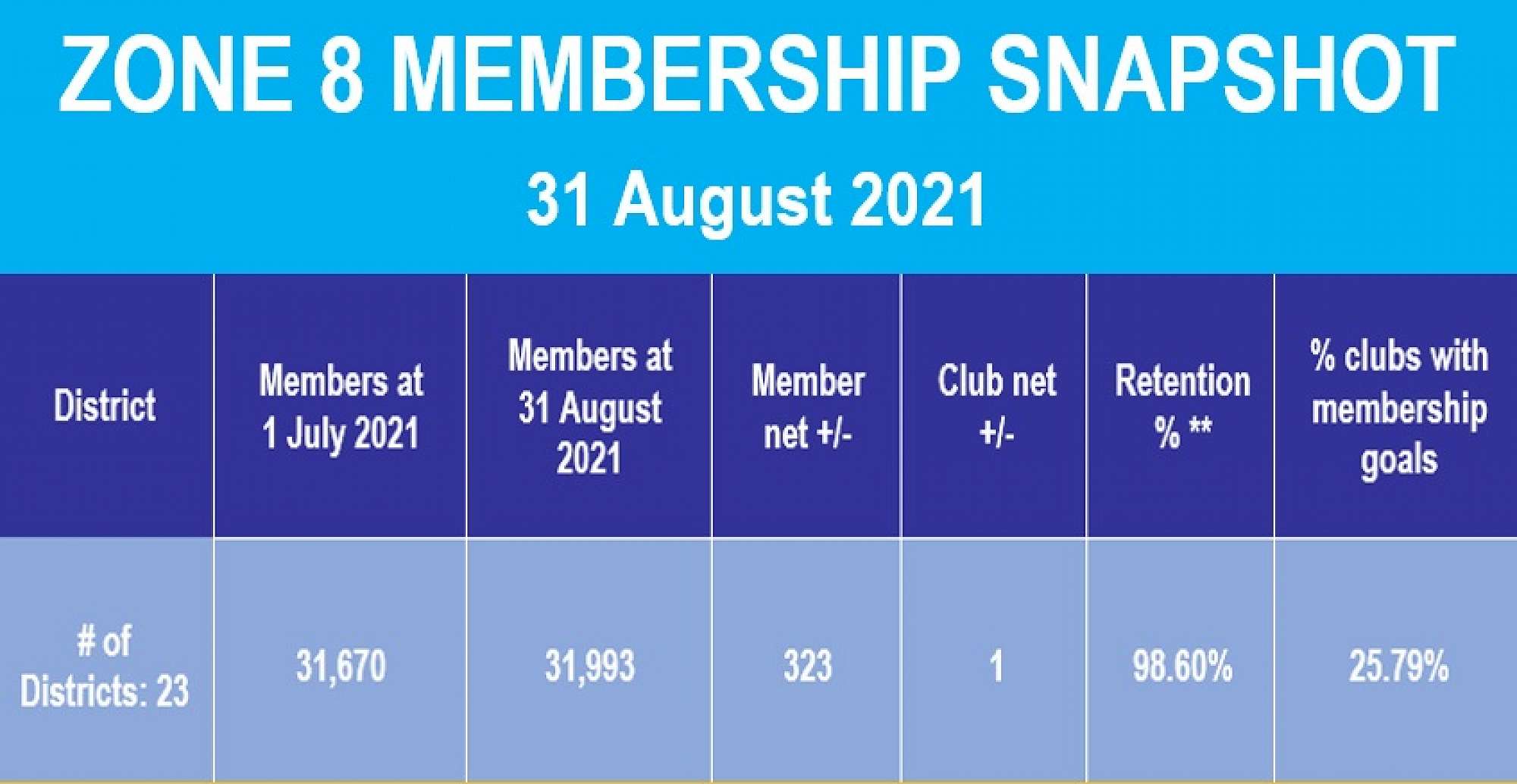 Want to know how our zone and your district are doing membership-wise? Check out this snapshot.