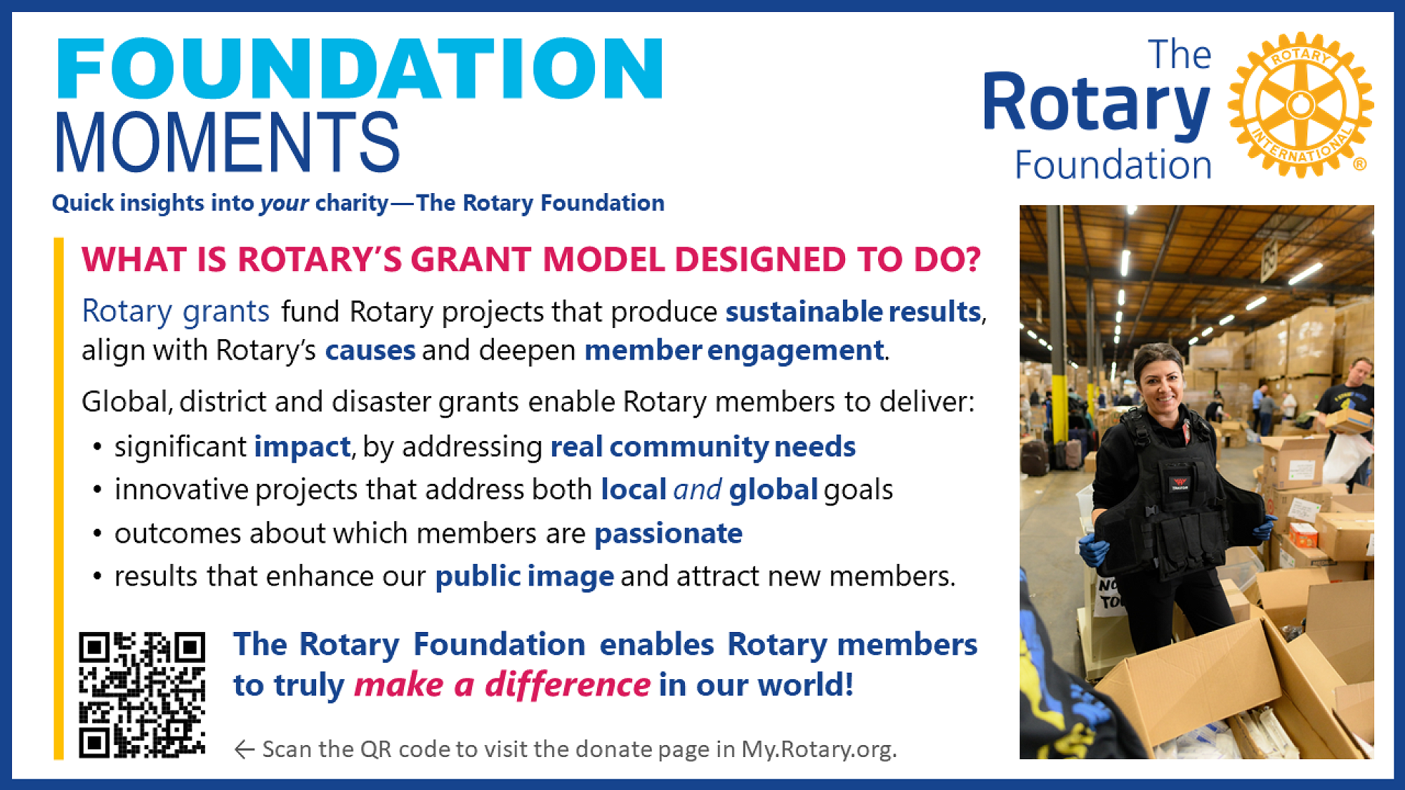Each month, we’ll provide a snippet of information about the Foundation, “Foundation Moments”, in a form that can be readily used by clubs and districts in their newsletters, web pages, social media pages etc.
