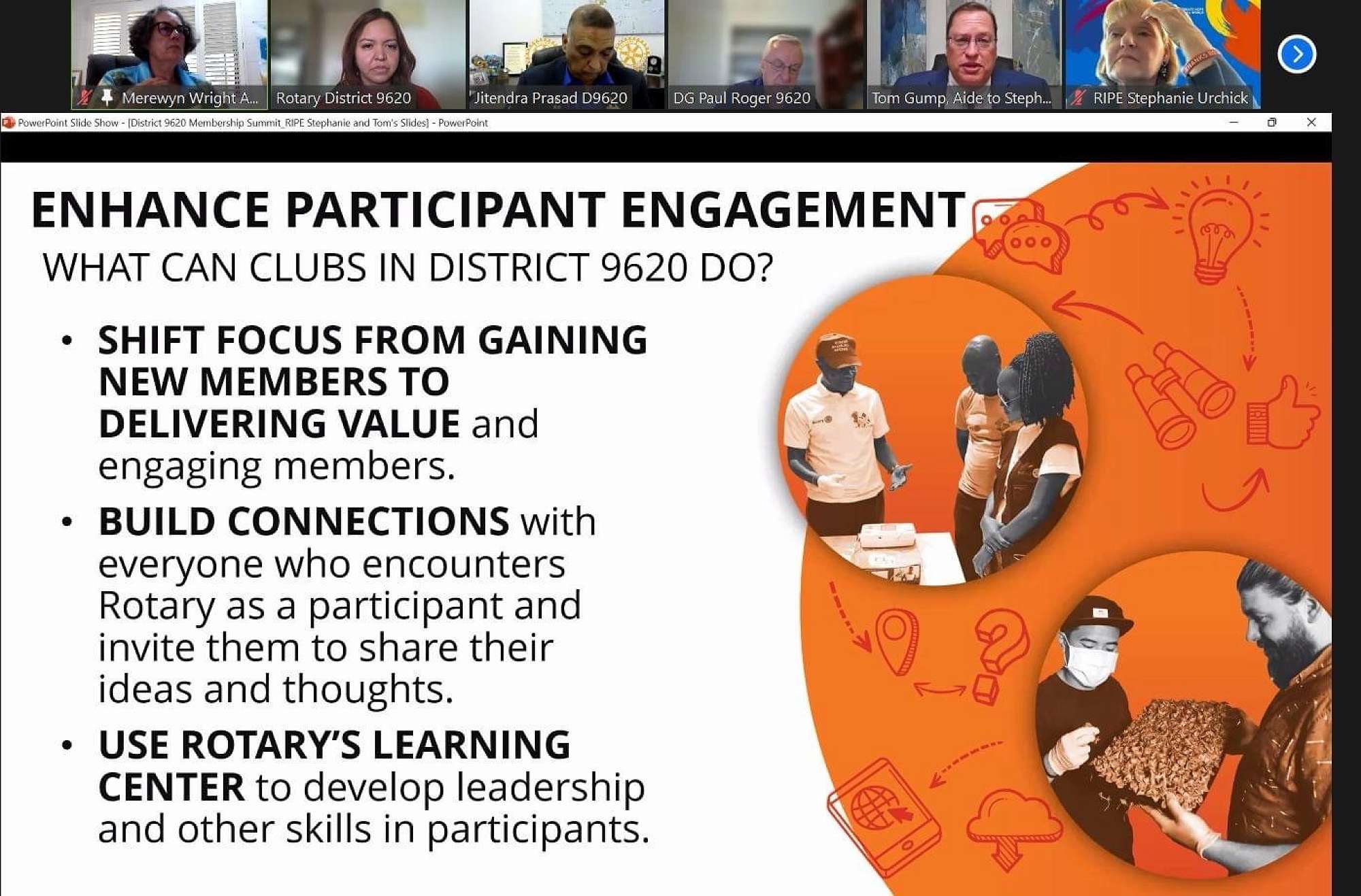 The Rotary District 9620 Membership, held on July 30th 2023, the virtual event saw distinguished speakers, including Rotary International President-Elect Stephanie Urchick and Membership Strategist Tom Gump, inspire and empower attendees to take action towards a brighter future for Rotary.