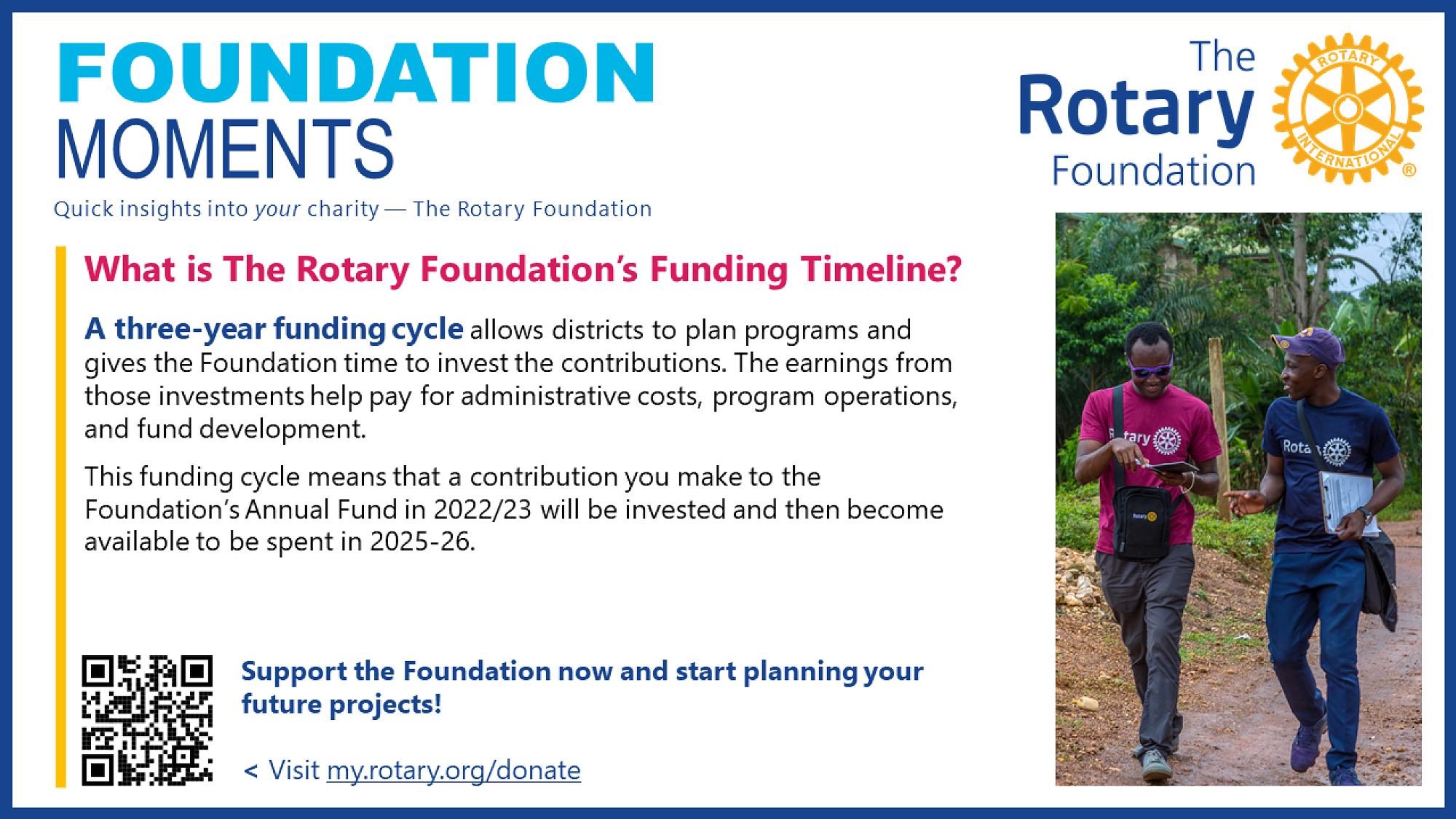 Each month, we’ll provide a snippet of information about the Foundation, 'Foundation Moments', in a form that can be readily used by clubs and districts in their newsletters, web pages, social media pages etc.