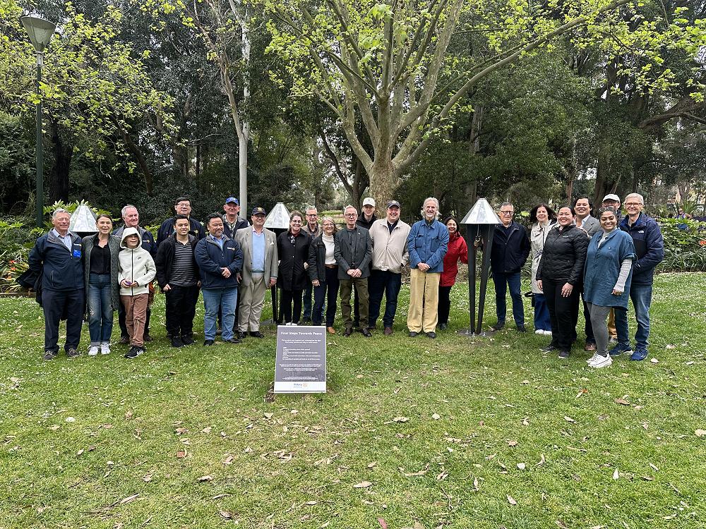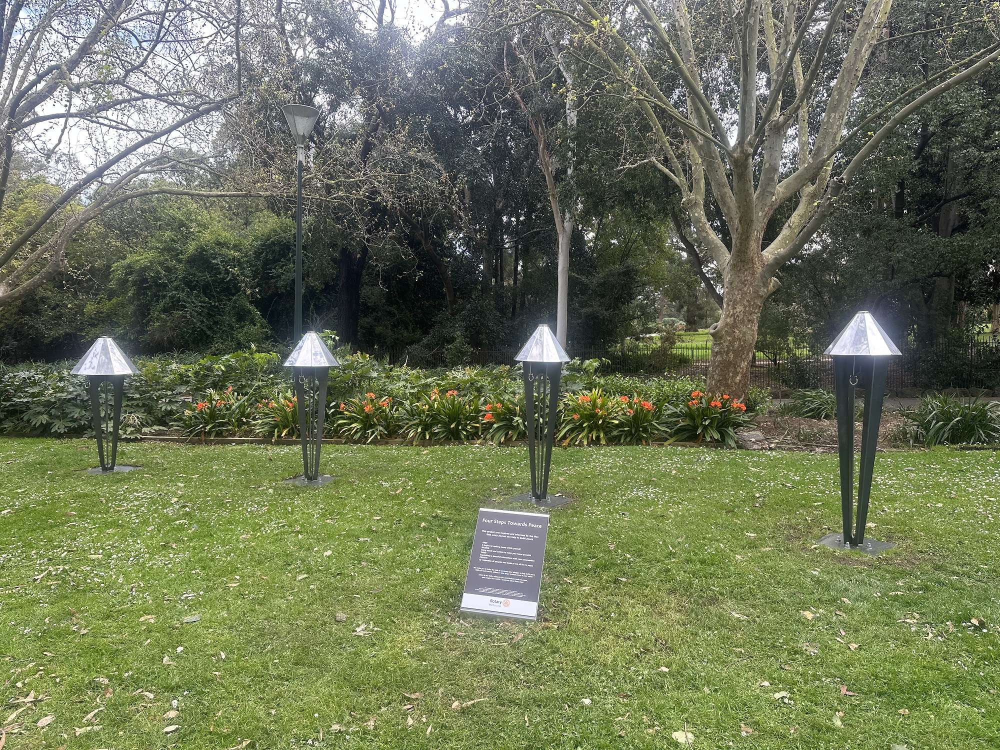 As a part of its work to promote and build peace, the Rotary Club of Melbourne created and designed a project to install four peace bells in the recently renamed Rotary Peace Park located at the corner of Anderson Street and Domain Roads, adjacent to the Royal Botanical Gardens in Melbourne.