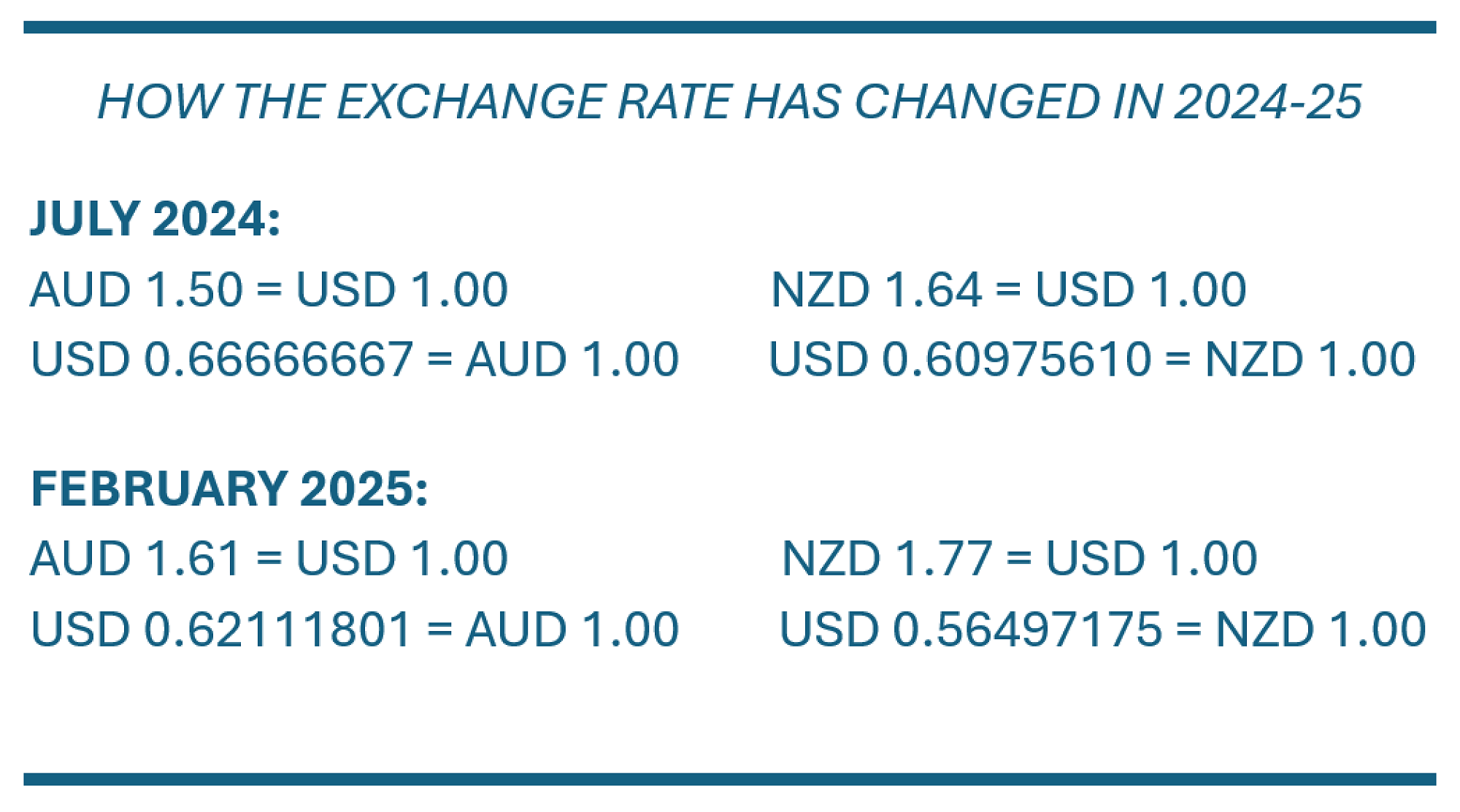 Since June 2021, the RI Exchange Rate for Australia has fallen by 20% and New Zealand by 23%. Our local currency is not achieving what it used to.