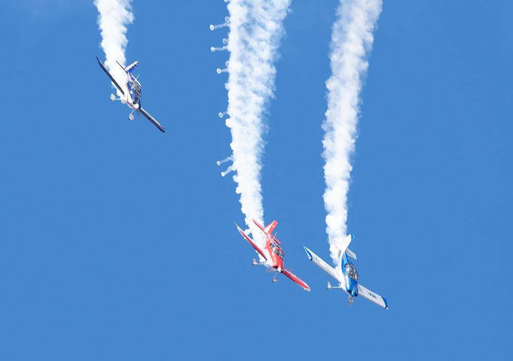 Other highlights were death-defying stunts by Chris Sperou and South Australia’s own Silver Sharks; Lyndon Trethewey, who did a stunning solo display, then teamed up with the Silver Sharks for a “hold your breath, knife-edge” moment; the historical value of Whalley’s Warbirds; the Poseidon P8 fly-past; and a visit from 16 year old Pilot Alicia Hayes, who flew her aircraft like a veteran and did a textbook landing in a difficult crosswind.