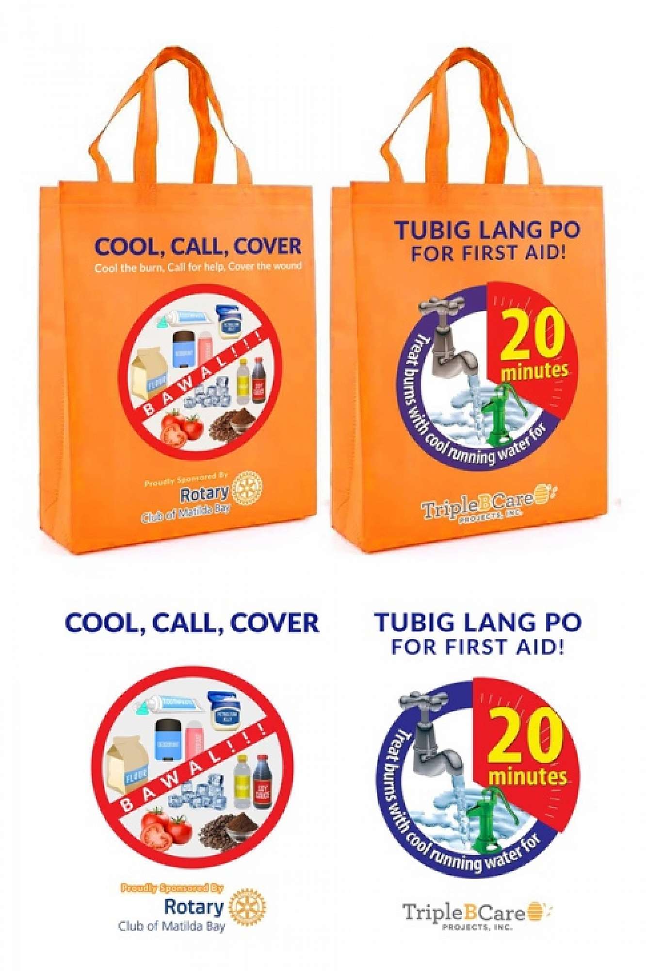 RC Matilda Bay used a $5,000 District Grant ($2,500 from District and $2,500 from RCMB) to purchase 4,500 reusable eco-bags. Each bag was printed with a message to promote the use of cool running water for 20 minutes to cool the burn, and advise against first aid ‘treatments’ that are ineffective or exacerbate the severity of the burn.