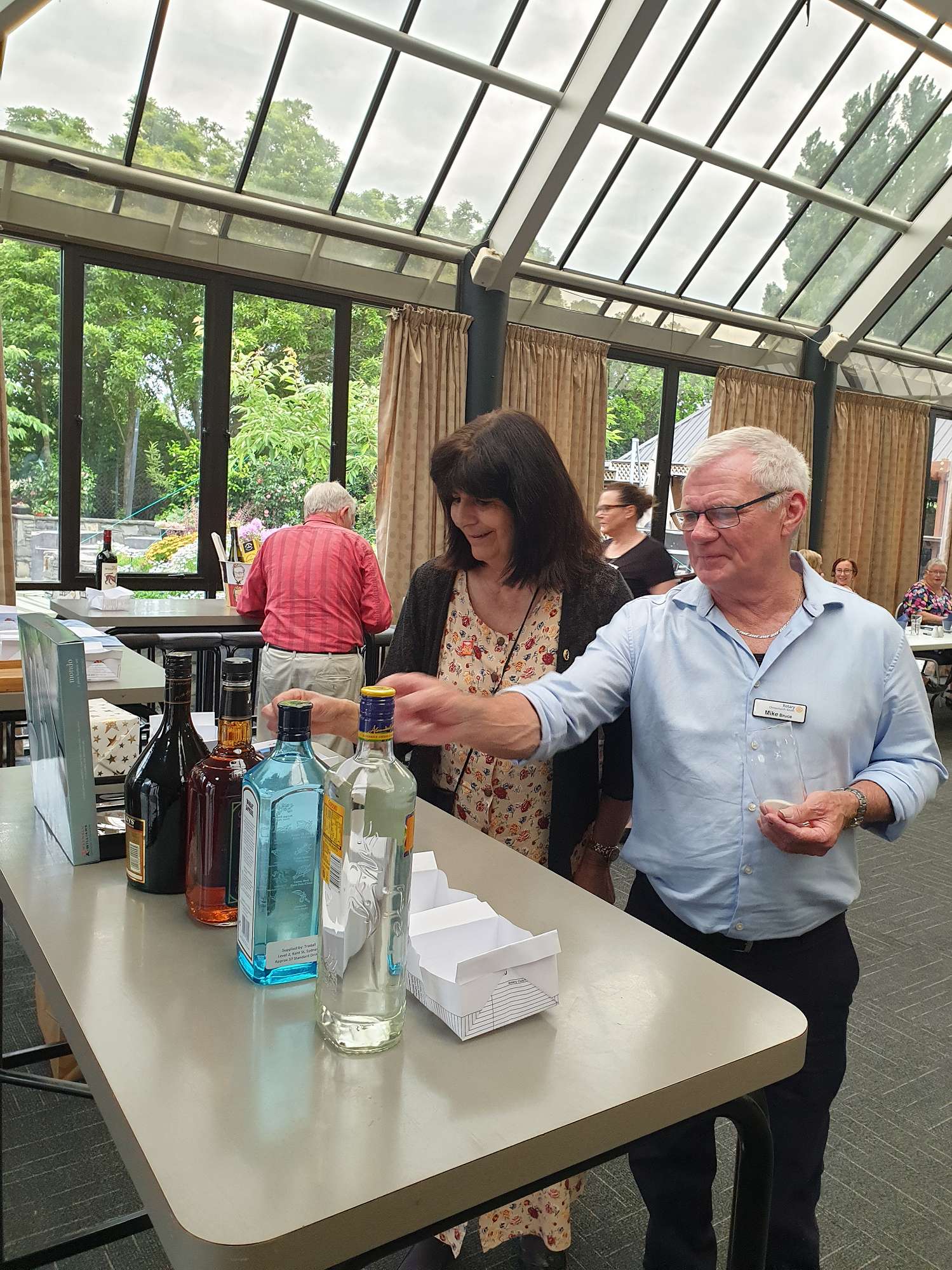 The auction commenced with attendees placing their preferred number of tickets in boxes placed alongside the items. If you particularly wanted that bottle of Bailey’s, then maybe all tickets to increase your chances?. Once everyone has placed their “bids” a draw was held for each item. This was made all the more entertaining by pressing into service a quick-witted club member and an assistant who made the whole experience an absolute delight with their acting, observations and quips as the winning number was drawn for each prize.