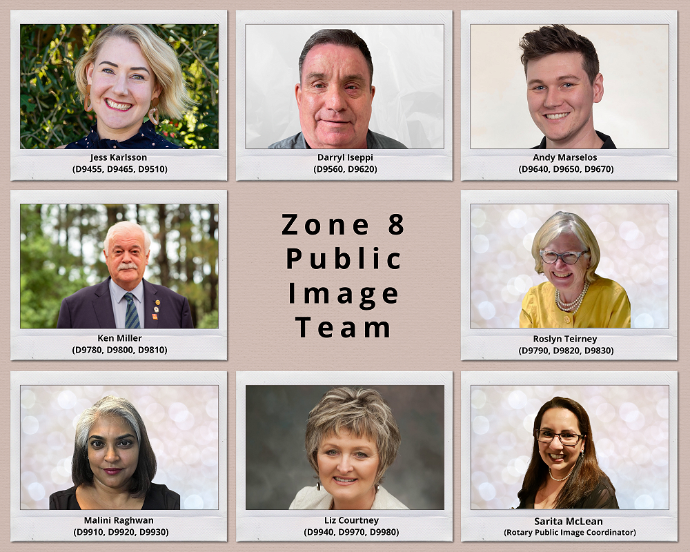 Public Image is one of our major challenges, but one which I am hopeful that the team of 2021 will tackle to the best of its abilities. The Regional Leadership Team of (Zone Director, Rotary Coordinator, Regional Rotary Foundation Coordinator and Regional Public Image Coordinator) are committed to working collaboratively as very simply, we need each other whether it is to help raise funds for The Rotary Foundation, embark on membership drives or celebrate the wonderful work carried out by clubs and districts. I am excited to introduce the Zone 8 Public Image Team: