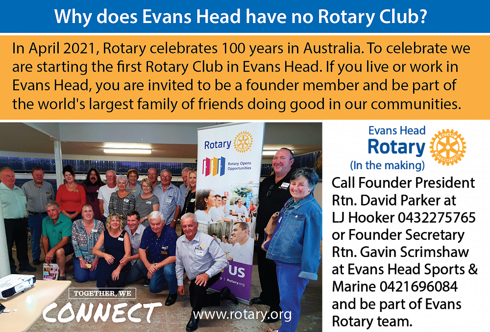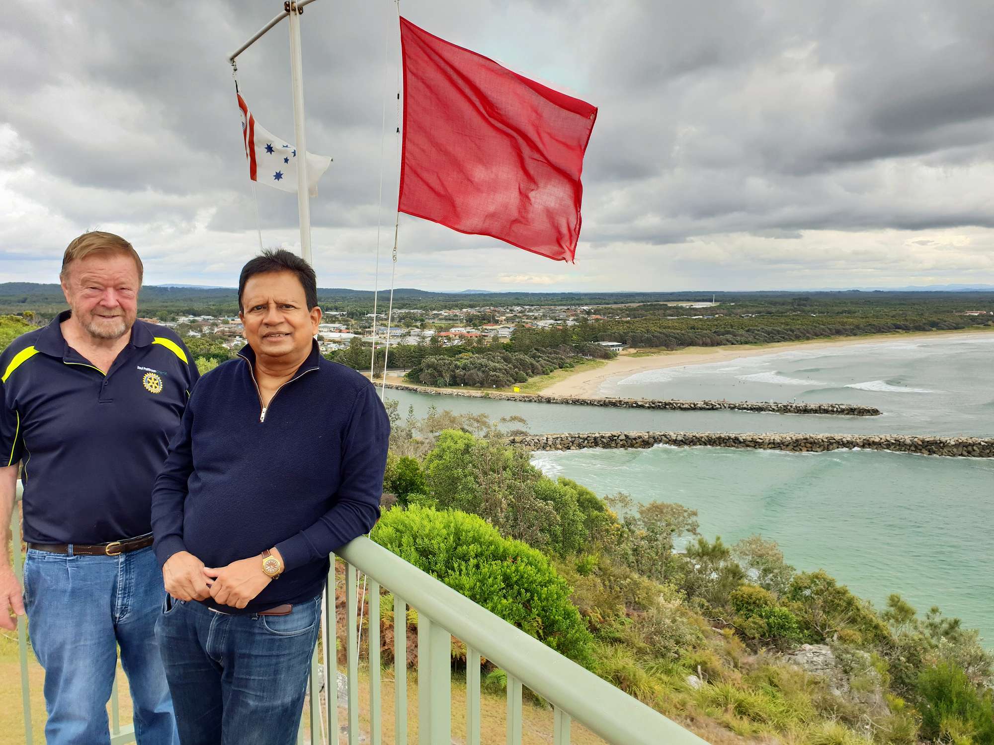 19th October 2020 was the first time I visited Evans Head, a beautiful small seaside resort town in northern NSW in our Rotary District 9640 in Australia. The day after my Governor’s visit to a Club, Past Governor Terry Brown from Lismore and Geoff Austin President of Casino Clubs took me on a tour of Evans Head 60 km away. Looking down from the hilltop lookout, I could see many rooftops and saw a great opportunity and asked them, “why is there no Rotary Club in this town?” They said for 4 years they have been talking about starting one, but no one took the leadership.