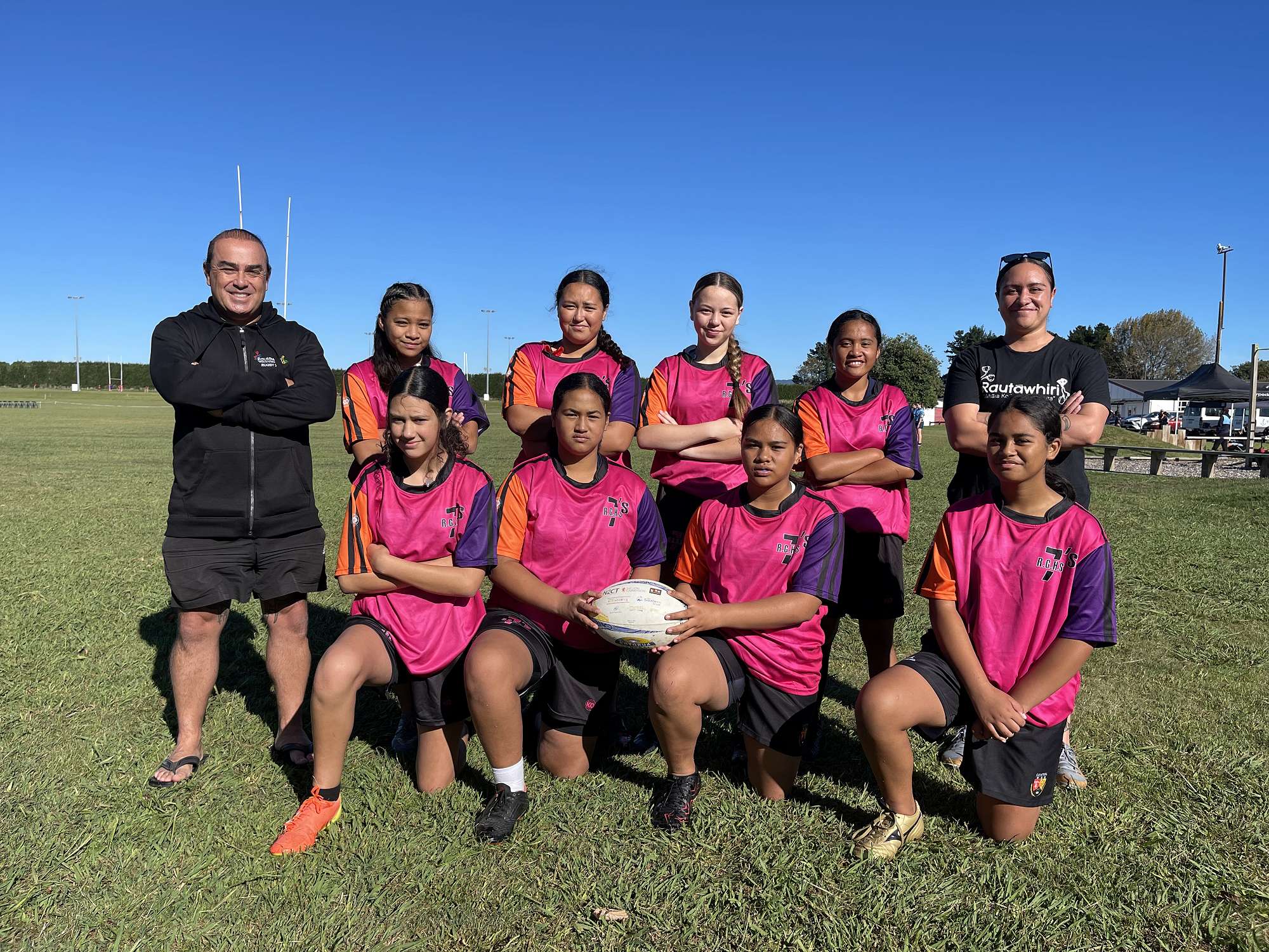 U19 team. Back Row L - R: Kimoana Niupalau (assistant coach), Chetique Hohepa, Gabby Clarke, Blosson Tukiwaho, Capri Allen, Jana Webber, Tawa Ashby, Helena Dou’ble (assistant Coach).