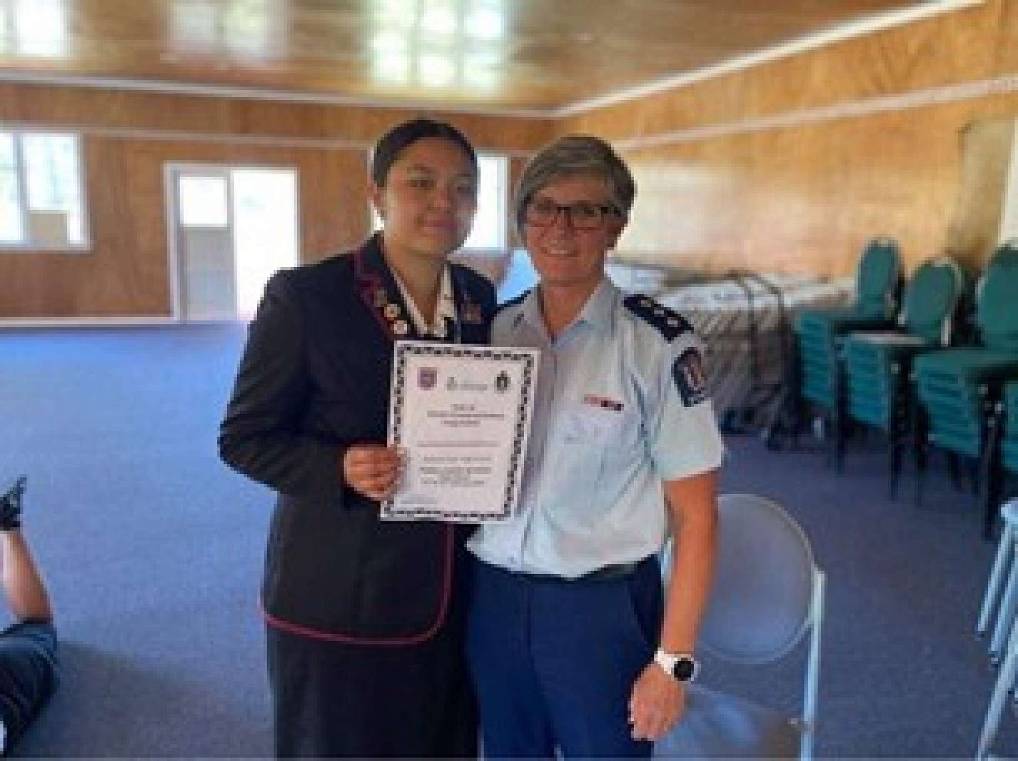 PRIMED student recipient Danisha Te Kaawa with Inspector Nic Cooney