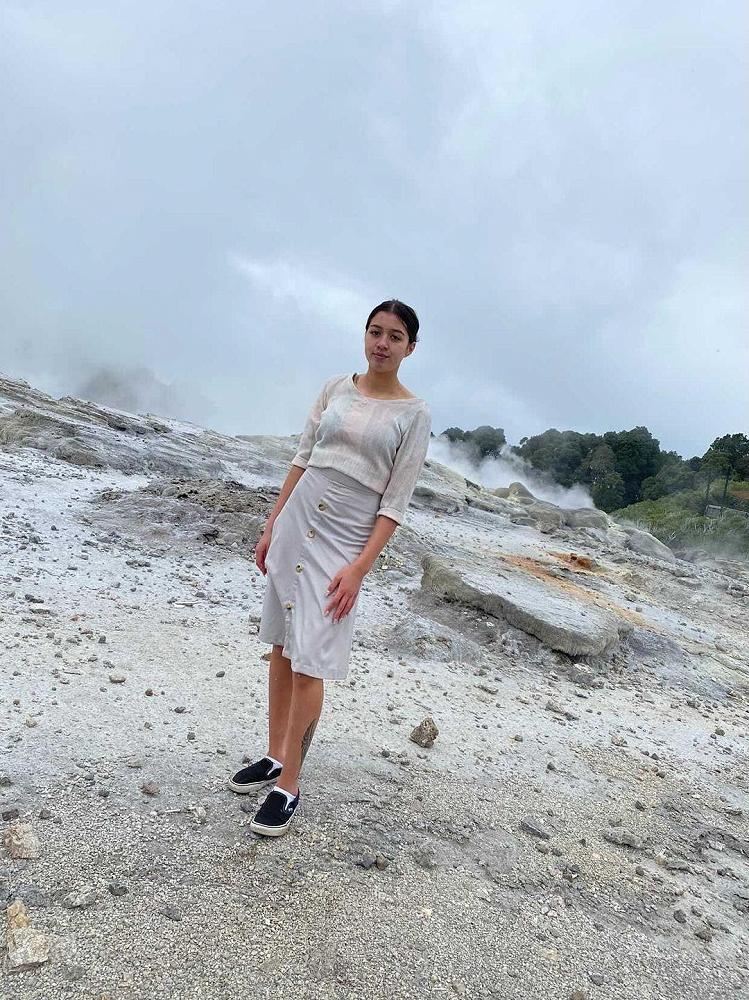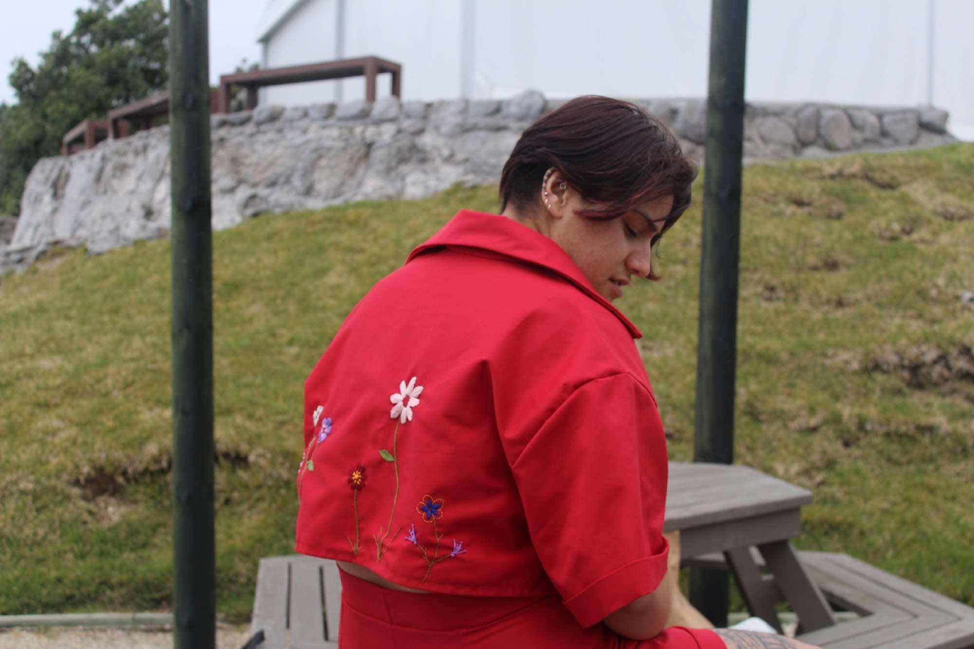 Heriata Rukupo has created a Korean Inspired red cropped shirt and shorts for her Level 2 Technology project. She had adorned the back with cartoon style hand stitched flowers.
