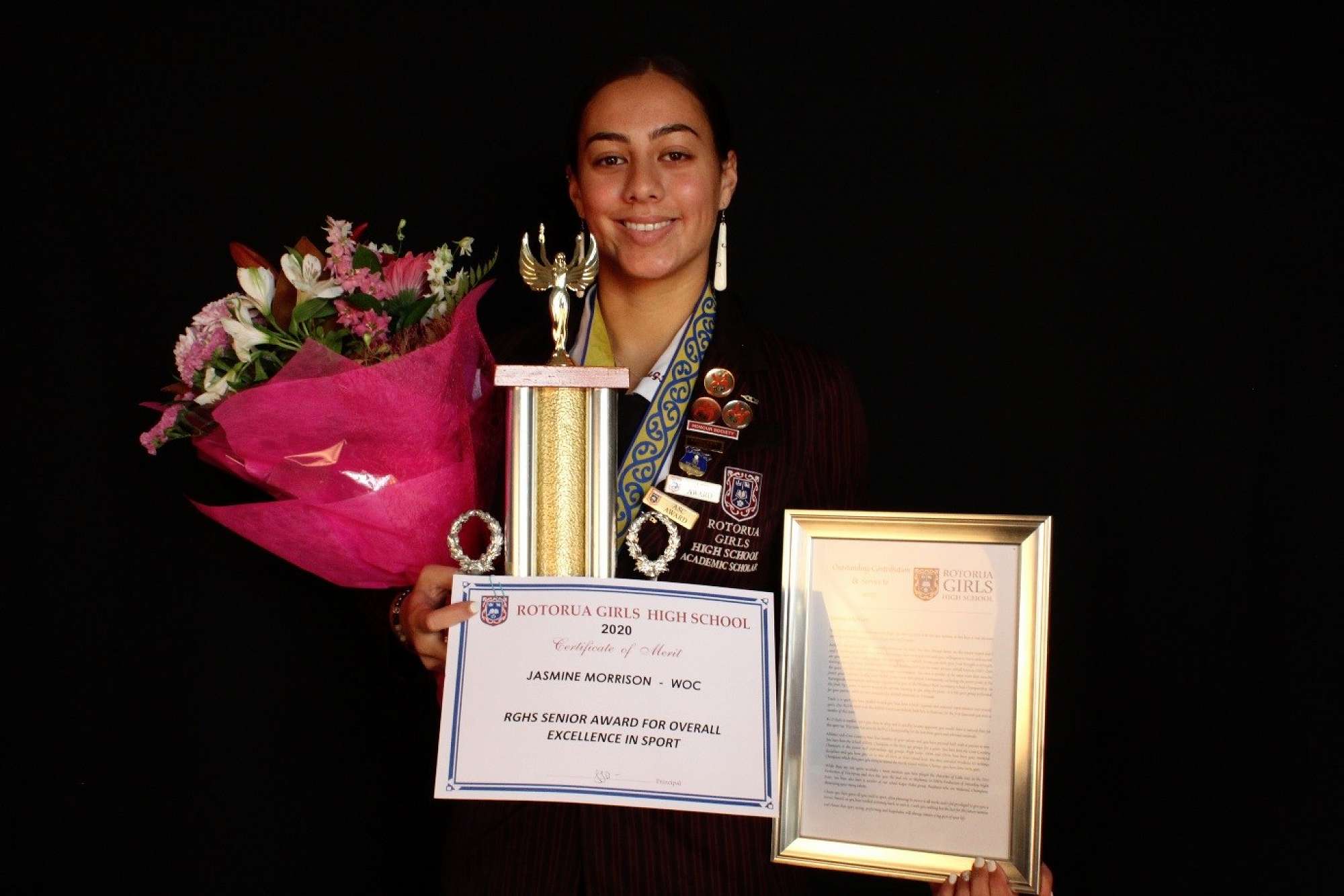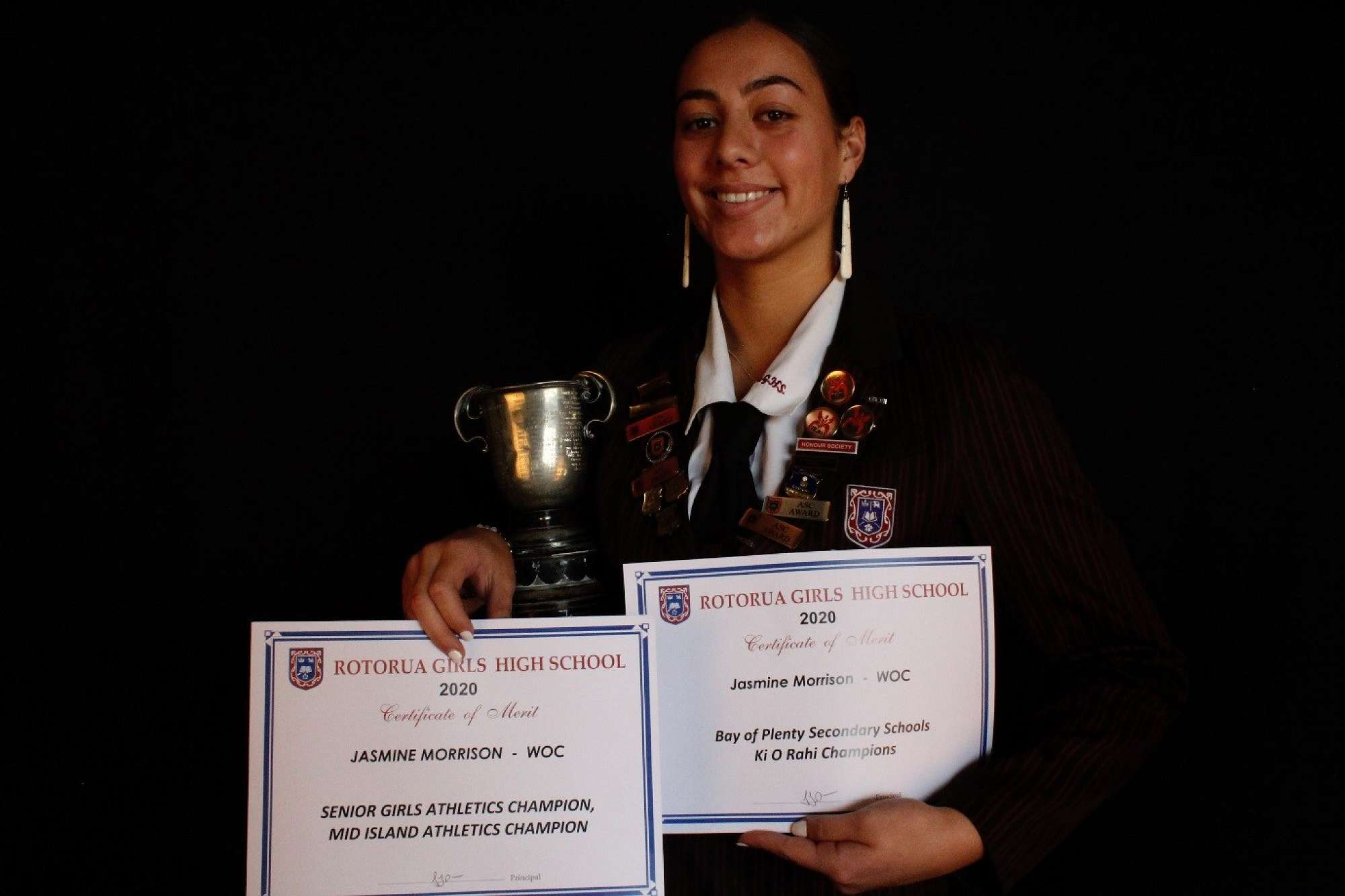 Jasmine Morrison received recognition as 2020 Senior Athletics Champion, Mid Island Athletic Champion and Bay of Plenty Secondary Schools Ki O Rahi Champions