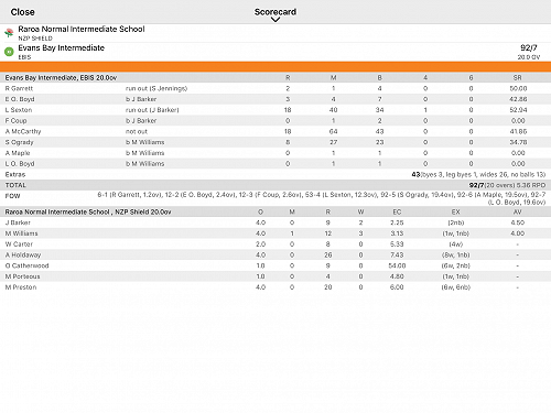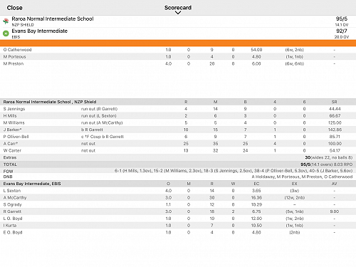The duo went on to close out the game in the 15th over, Carr the top scorer of the day with 25* while Carter finished with 13*. The victory sealed Raroa Intermediate a place in the National Finals for a third consecutive year. NZC hosting the 2017 tournament in Term 4 at Lincoln, Canterbury