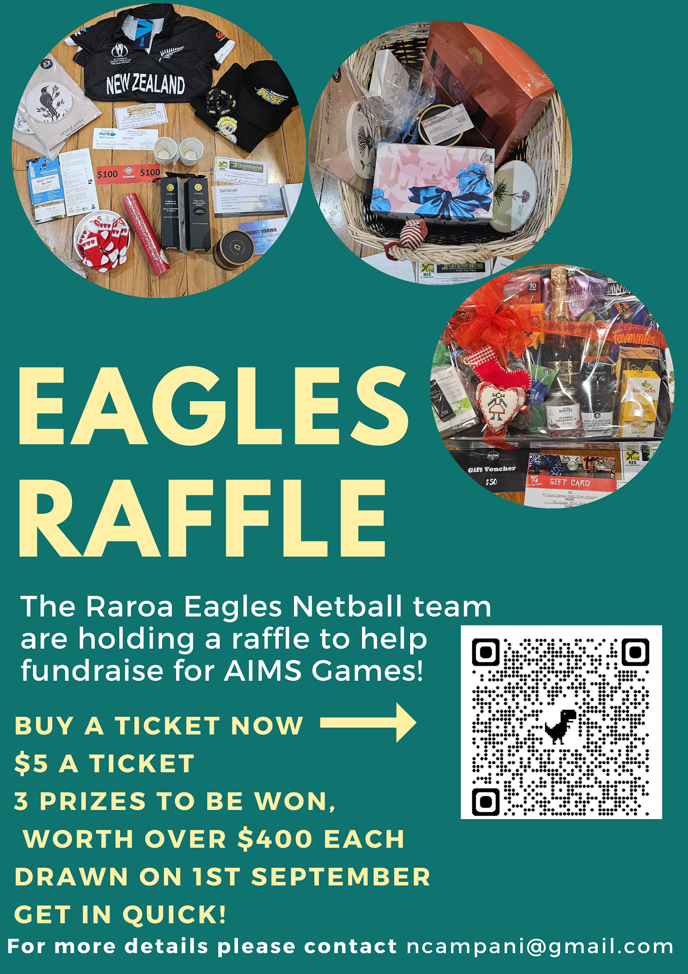 The Raroa Eagles have collected prizes and vouchers from around 30 local businesses. We've put together 3 baskets, all worth around $450 full of prizes to raffle.