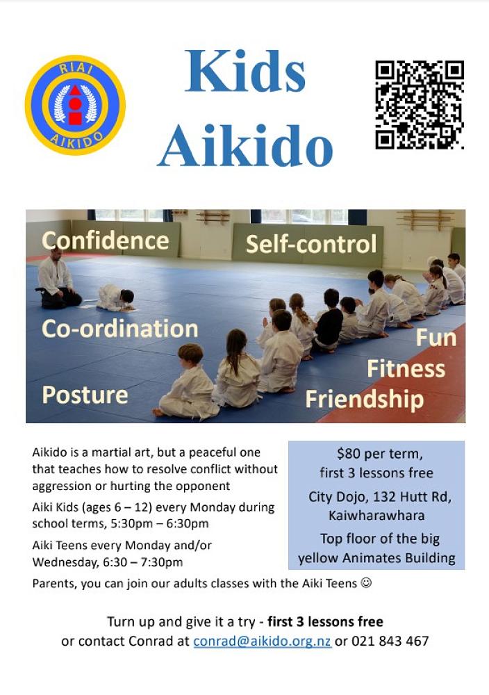 Contact Conrad at conrad@aikido.org.nz or 021 843 467, or visit www.aikido.org.nz.