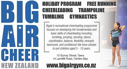 BIG AIR GYM ~ is happy to be back up & running and hopes you will join in the fantastic Holiday Programme classes we are offering - cheerleading, tumbling, jumping, stunting, dance, all activities that are great for co-ordination, balance, flexibility, strength, teamwork and confidence.