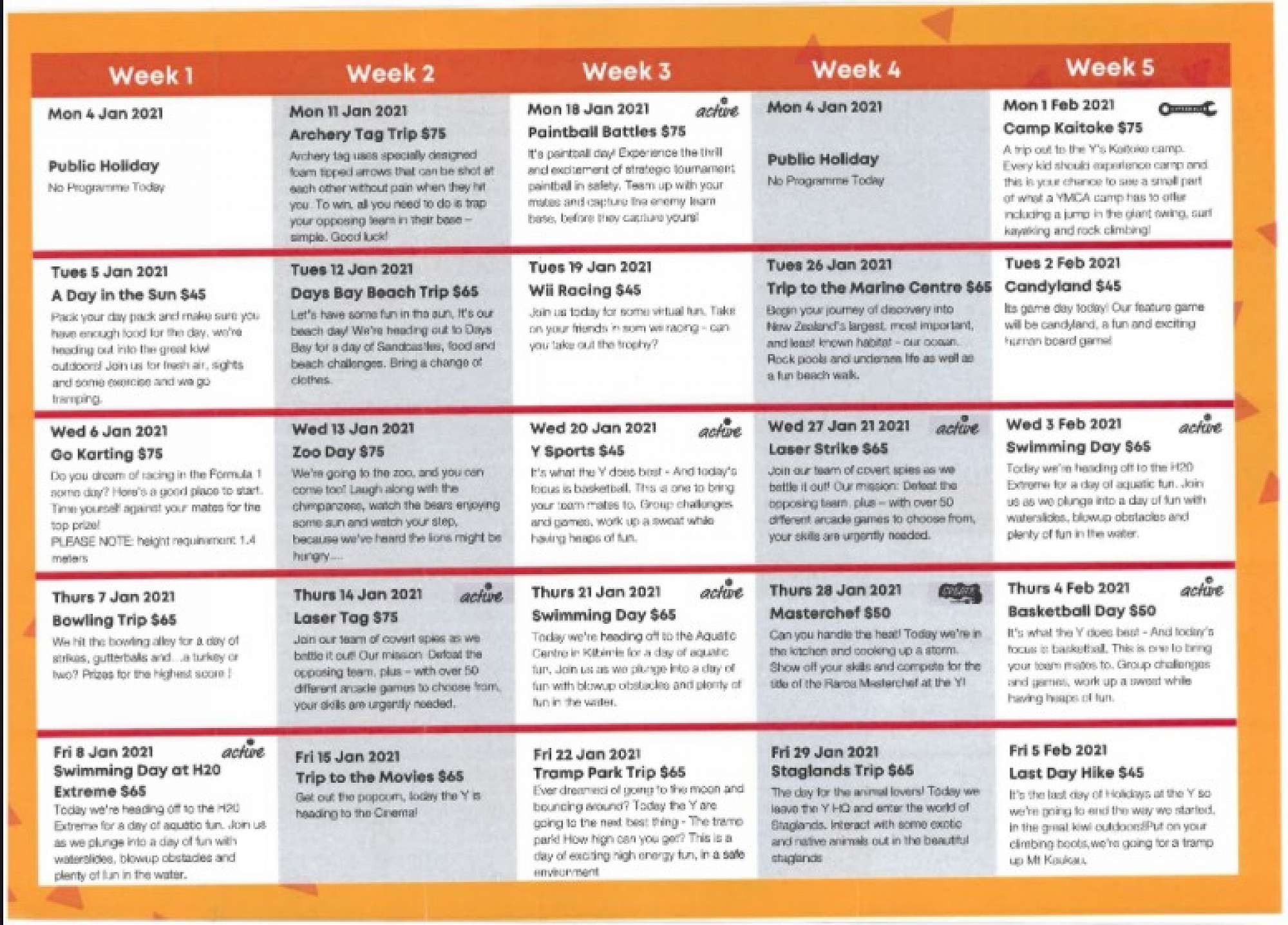 The Y-Kids Holiday Programmes -Summer 2020/2021 at Raroa