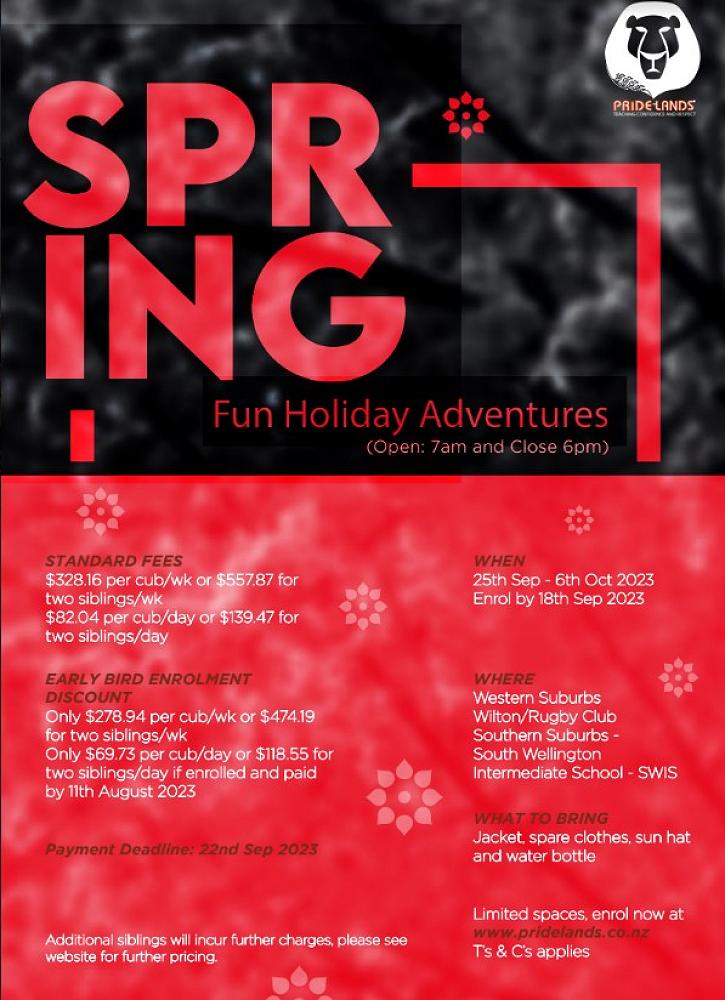 SPRING SCHOOL HOLIDAYS AT SOUTH WELLINGTON INTERMEDIATE SCHOOL
