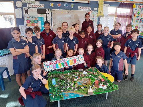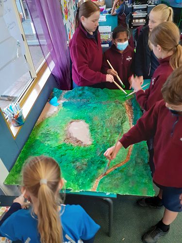 Once we began making it, the children would come in with joy every morning to see the progress and would end up working on the model before school and even during their own morning tea and lunch. They had so many creative ideas, bringing in many resources from home such as toy animals, tanks, cotton balls that became our trees, bamboo skewers that became our railroad.